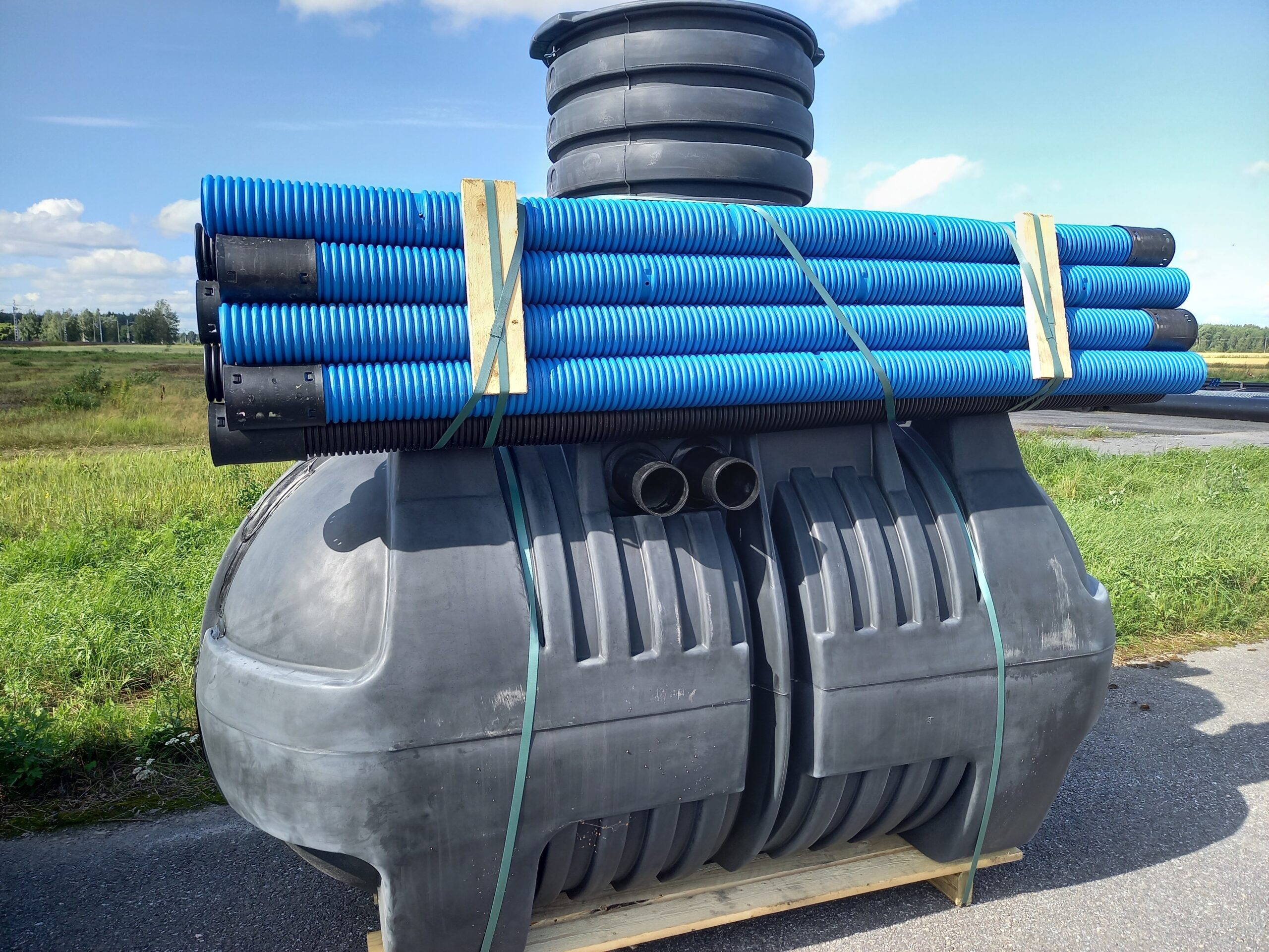 Säiliö on tarkoitettu 1-6 hengen talouden kaikkien jätevesien käsittelyyn sisältäen pyykki-, tiski- ja WC:n vedet. Rotaatiovalussa tullut valuvirhe korjattu.