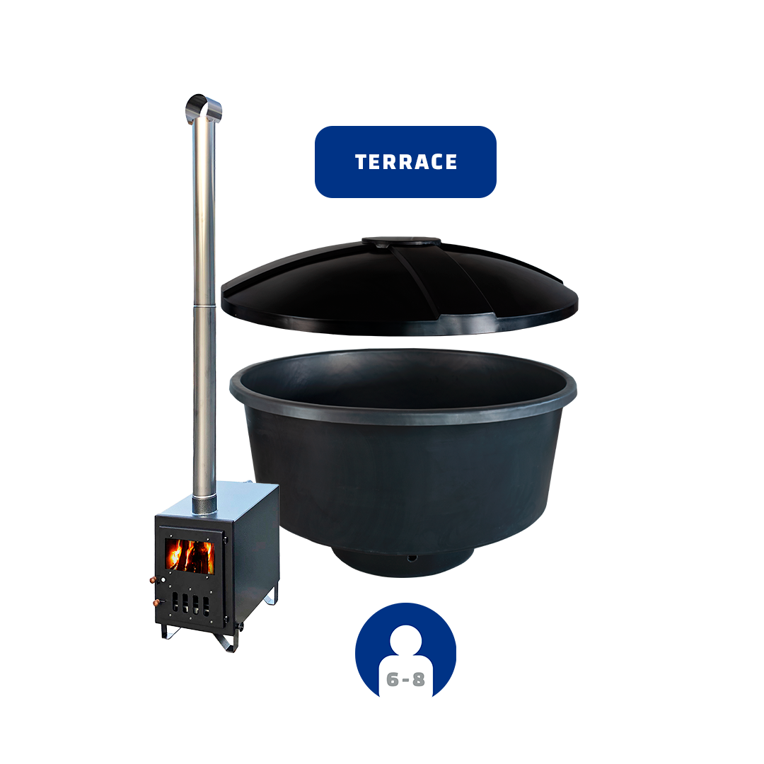Terassiin upotettava PW-SPA Terrace kylpytynnyri on tyylikäs ratkaisu, jolla mahdollisuudet ovat rajattomat. Upota kylpytynnyri terassirakenteeseen käyttäen apuna PW-SPA Terracen asennusohjetta. Käsistään kätevä nikkaroi kylpytynnyrin ympärille täysin omanlaisensa ulkoasun ja ympäristön. Reilun kokoinen, 6–8 hengelle suunniteltu, laadukas kylpytynnyri on valmistettu käsin Pohjanmaalla, Tervajoella. Kylpyvesi lämpiää tehokkaasti merivettäkin kestävällä, merialumiinisella kamiinalla. Kamiinan lasiluukku luo tunnelmaa kylpemiseen ja siitä on helppo seurata palamista.